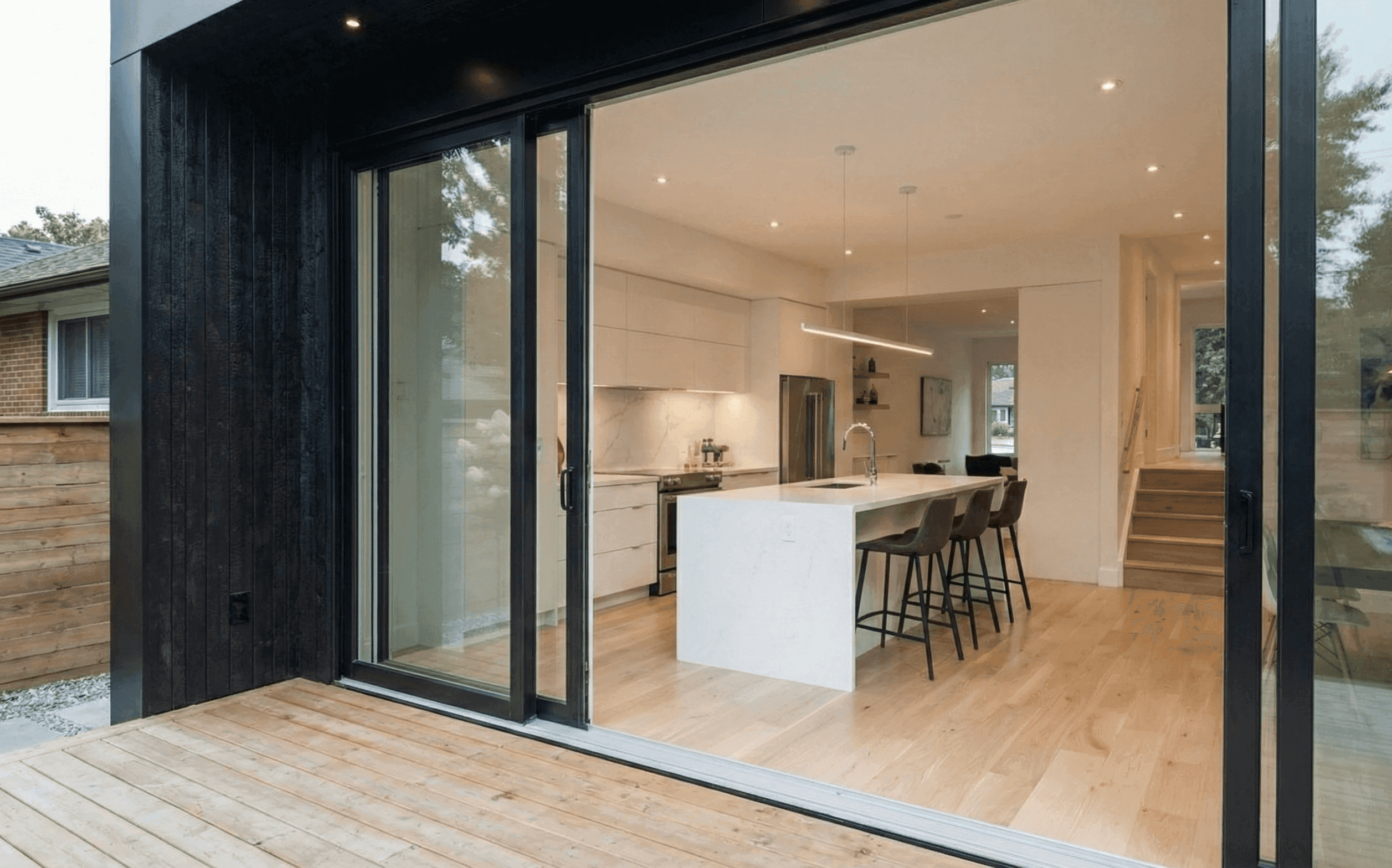 Antony’s bungalow is a bold dialogue between the existing residential architecture and modern design. The intervention consists of a rear extension clad in vertical black timber, creating a clear transition from the traditional brick context of the neighbourhood. Central to the design is the three-panel glazing, which frames backyard views and maximizes passive daylighting.